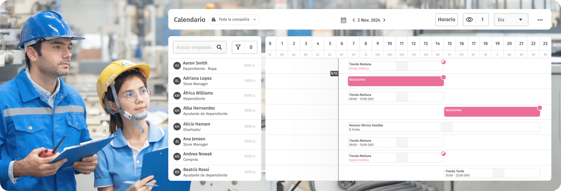 Cumple la Ley de Registro Horario con la planificación de turnos, la clasificación de horas trabajadas y la gestión de empleados rotativos