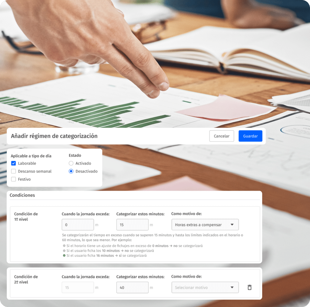 Gestiona jornadas reducidas, diferentes semanas laborales y centros de trabajo. Controla excesos, autocompensaciones y pausas con trazabilidad total, incluso en organizaciones grandes o con alta rotación.